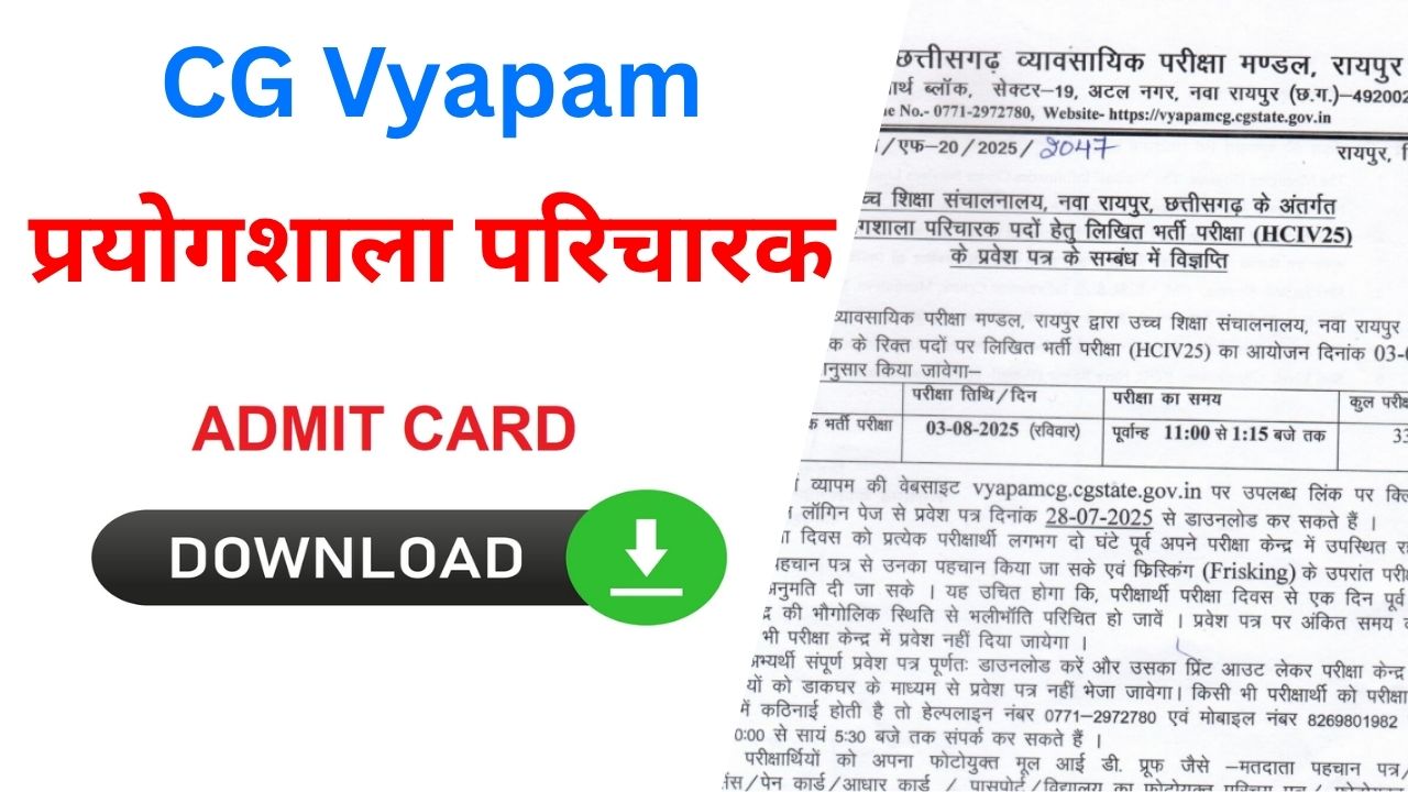 CG Vyapam Abkari Aarakshak Admit Card 2025 OUT NOW