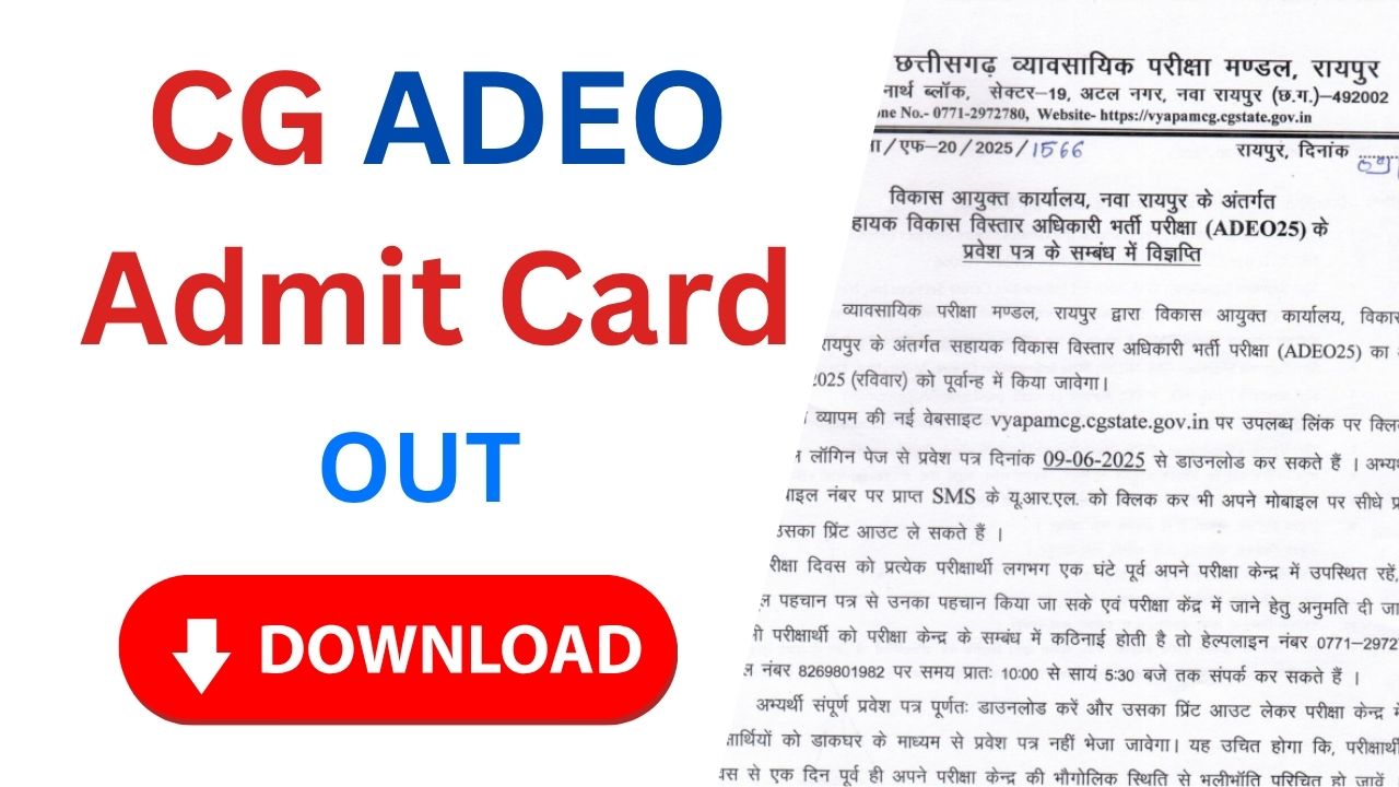 CG सहायक विकास विस्तार अधिकारी एडमिट कार्ड 2025 जारी, यहां से डाउनलोड करें CG ADEO Admit Card PDF Download Link OUT
