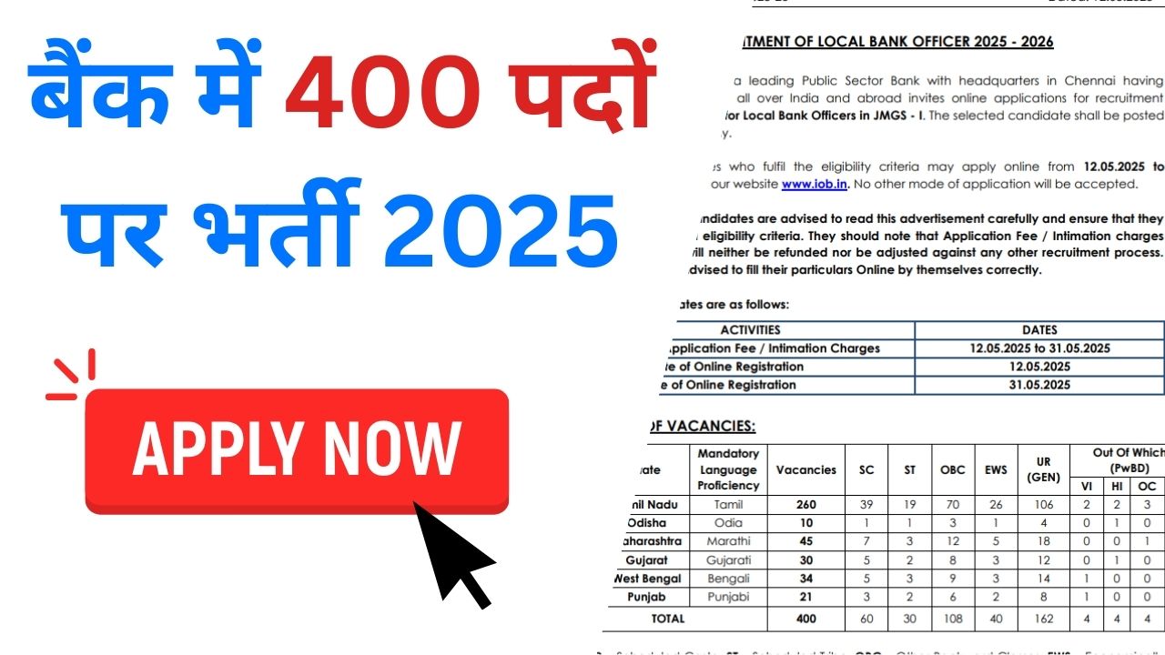 Indian Overseas Bank Vacancy 2025: इंडियन ओवरसीज बैंक में 400 लोकल बैंक ऑफिसर पदों पर बम्पर भर्ती 2025