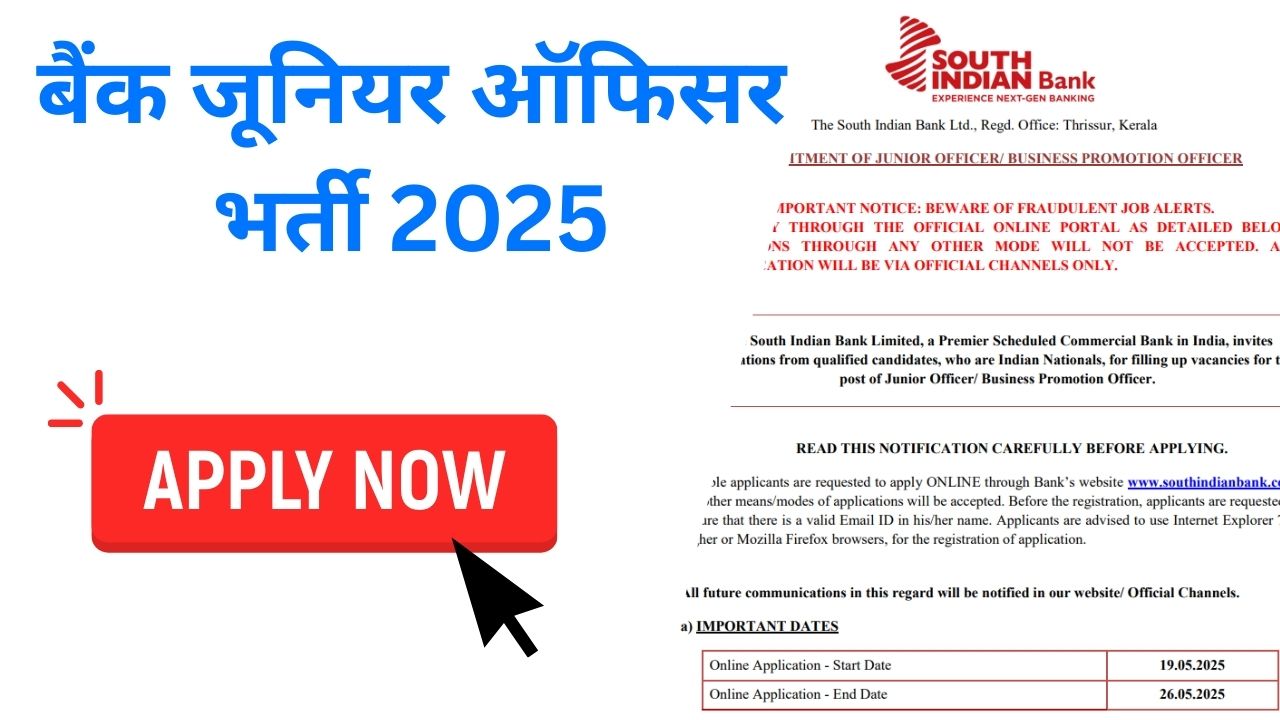 South Indian Bank Vacancy 2025: साउथ इंडियन बैंक जूनियर ऑफिसर और बिजनेस प्रमोशन ऑफिसर पदों पर भर्ती 2025