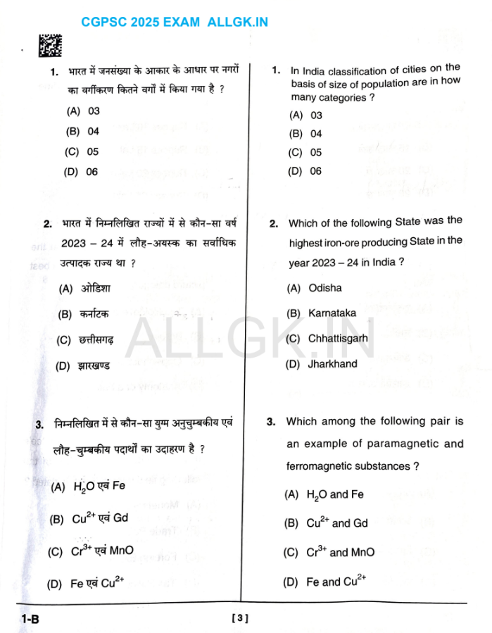 CGPSC Answers Key 2025 प्रश्नों के उत्तर को बोल्ड किया गया है एग्जाम 9 फ़रवरी 2025 को हुआ जिसका आंसर हमारे GK विभाग ने खोज के इस वेबसाइट में प्रकाशित किया |