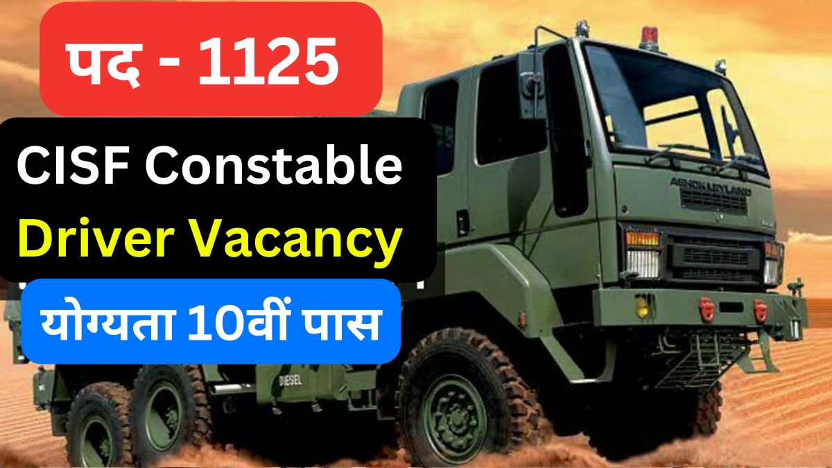 CISF Constable Driver Vacancy 2025: सीआईएसएफ में कांस्टेबल ड्राइवर के 1125 पदों पर भर्ती, योग्यता 10वीं पास