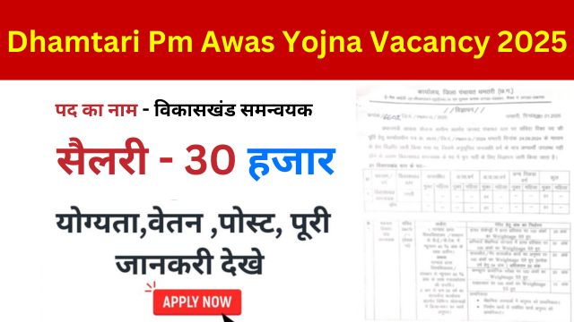 Dhamtari Pm Awas Yojna Vacancy 2025: धमतरी प्रधानमंत्री आवास योजना के अन्तर्गत समन्वयक के पदों पर भर्ती