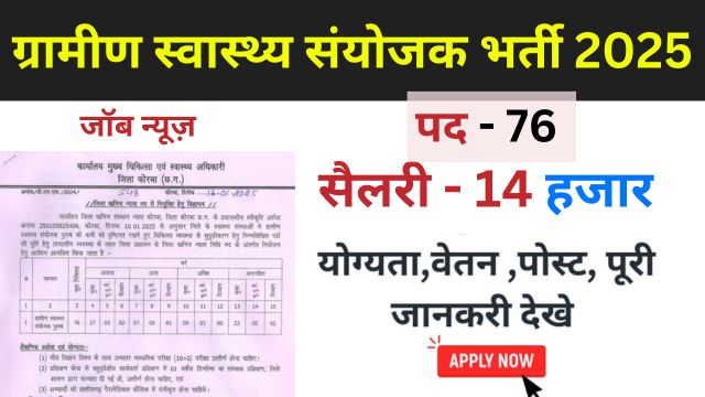 Korba CMHO Vacancy 2025 | कोरबा में ग्रामीण स्वास्थ्य संयोजक भर्ती 2025