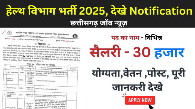 Sukma CMHO Vacancy 2025: सुकमा हेल्थ विभाग में 37 पदों पर सीधी भर्ती 2025, देखे Notification