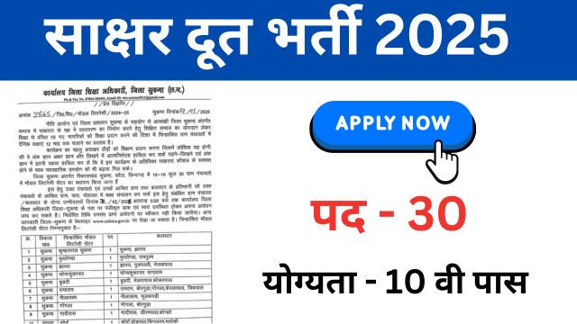 sukma district recruitment जिला सुकमा में साक्षर दूत के पदों पर भर्ती 2025