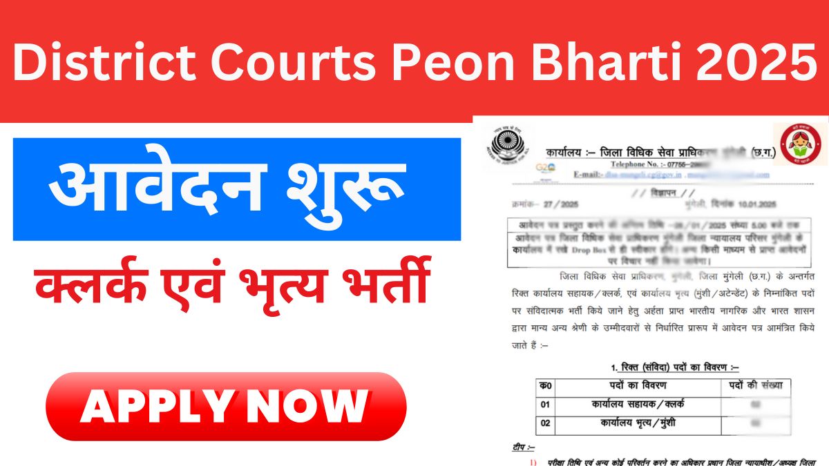 Mungeli Court Peon Vacancy 2025: मुंगेली विधिक सेवा प्राधिकरण में क्लर्क एवं भृत्य के पदों पर भर्ती 2025