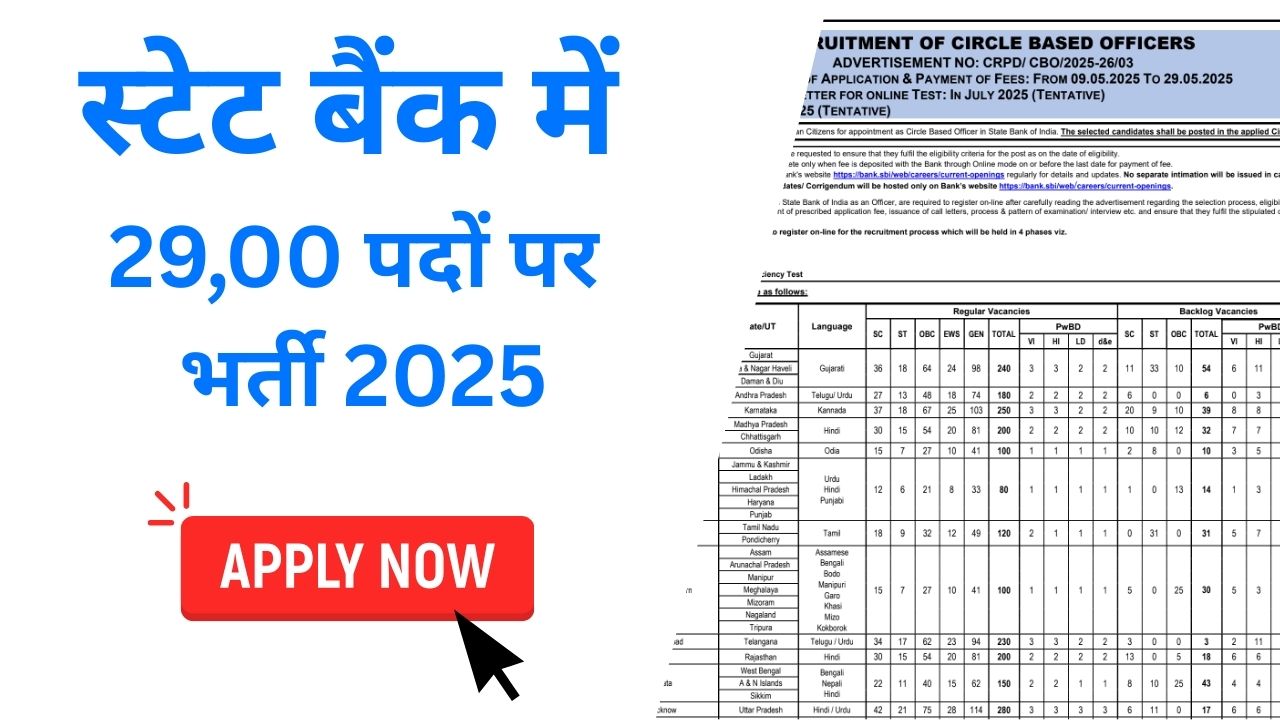 SBI CBO Vacancy 2025: स्टेट बैंक में 2900+ ऑफिसर पदों पर बंपर भर्ती 2025, जानें पूरी प्रक्रिया और अभी Apply करें