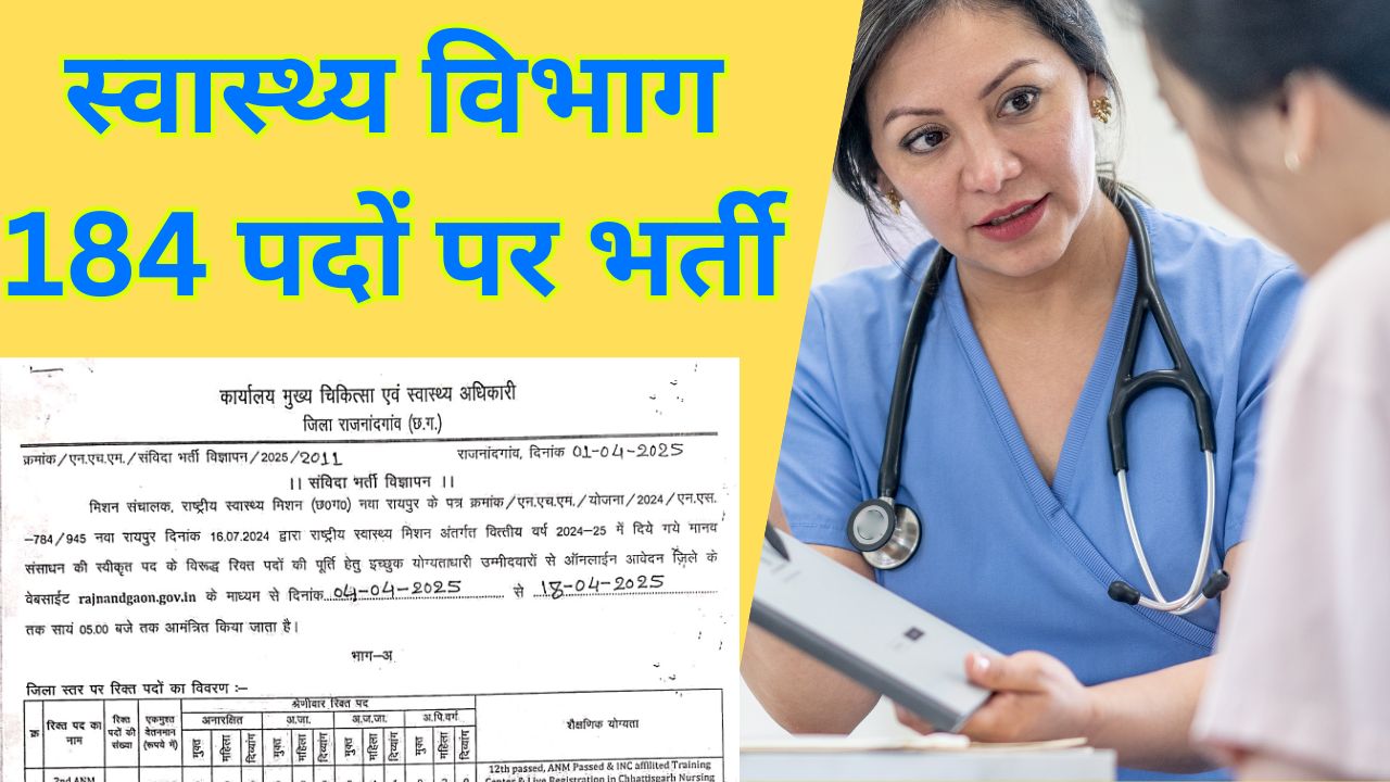 CMHO Rajnandgaon Health Department Vacancy 2025: राजनांदगांव स्वास्थ्य विभाग 184 पदों पर भर्ती, ऑनलाइन आवेदन शुरू
