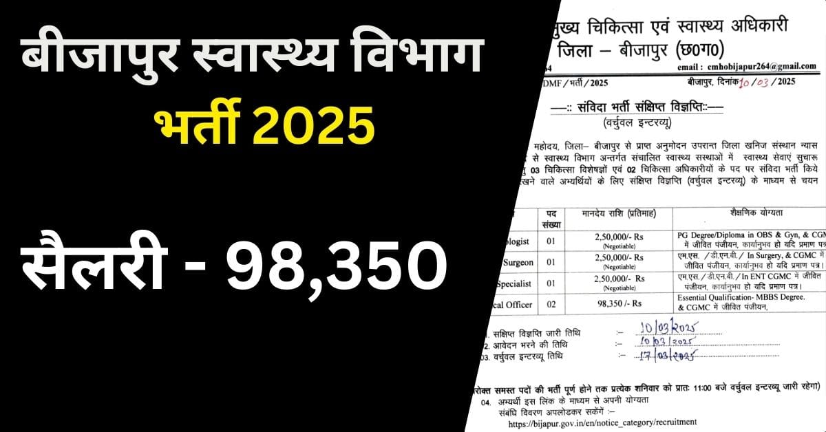 Bijapur CMHO Health Vibhag Vacancy 2025: बीजापुर स्वास्थ्य विभाग में चिकित्सा विशेषज्ञ और चिकित्सा अधिकारियों के पदों पर भर्ती 2025