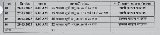 पश्चिम भानुप्रतापपुर वनमंडल अंतर्गत भारी/हल्का वाहन चालक के पदो पर सीधी भर्ती हेतु कौशल एवं प्रायोगिक परीक्षा निम्नानुसार आयोजित की गई है। परीक्षा स्थल का नाम तेन्दूपत्ता गोदाम परिसर दल्ली रोड नाका के पास भानुप्रतापपुर