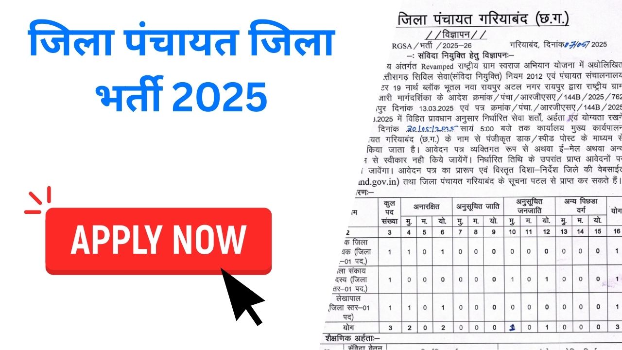 Gariaband Jila Panchayat Vacancy 2025: गरियाबंद जिला पंचायत जिला समन्वयक लेखापाल पदों पर भर्ती 2025